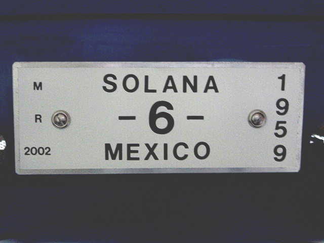 La especificación del auto será actualmente SOLANA PARA NIÑOS 1959, Serie 1, Tipo Carrera M-R 2002 (M = MODIFICADO, R = quiere decir RESTAURADO y 2002 = año de terminación de la restauración.), ya que como se observa en las fotos, se le hizo una modificación en la punta; la parrilla es más pequeña, respetando los cánones del diseñó de los autos de la época", dicha modificación no altera el auto, ni su función y peso, si no al contrario adquiere un toque más de carreras. Dicha modificación corrió por parte de Javier G. Solana, diseñador y constructor del auto en 1959 y se realizó completamente con implantes de aluminio forjado a mano.
