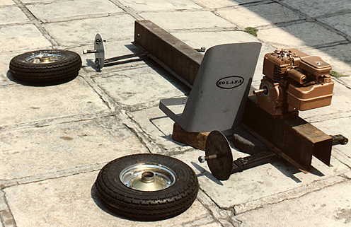 Este auto tiene clutch centrífugo, velocímetro, juego de luces, stop y direccionales, los asientos estan acolchados y son forrados en imitación piel , el piso de la cabina y extructura central del chasis, así como el mamparo trasero están alfombrados. Todo ha sido construido, practicamente en su totalidad (salvo algo de torno y soldadura de latón) en el pequeño tallercito que esta aquí en la casa. ( bajo el diseño y dirección Javier Solana creador y diseñador en 1957 del este modelo en particular y chasis).