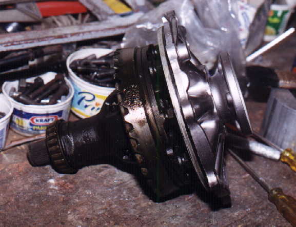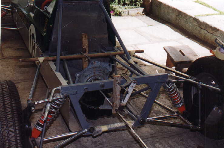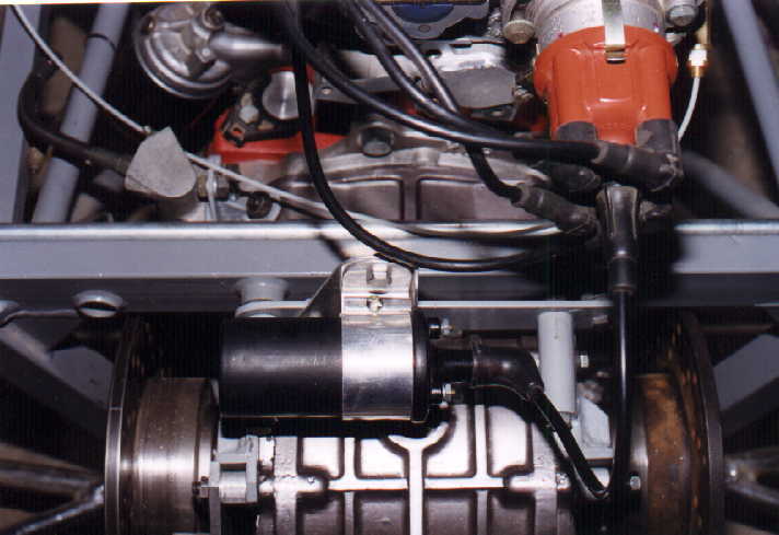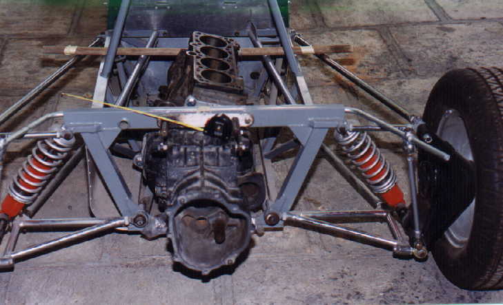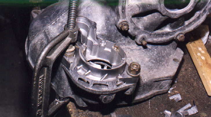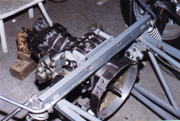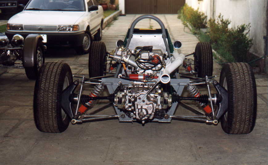 Como la caja de velocidades lleva los discos junto a las tapas, también se modificó la posición del housing de la marcha (que normalmente el VW sedán tiene). De hecho no se usó marcha de VW SEDAN , sino de VW GOLF, pues es mucho más chica, adaptada al housing en distinta posición con respecto a las orejas (resoldadas en aluminio) en que se atornilla, permitiendo de esta forma posicionar el disco muy cerca de la caja. Cabe mencionar, que en los Fórmulas, la marcha que se usa en las cajas de velocidades HEWLAND, vá en otra posición, es decir, junto al motor, y aquí es al contrario, la marcha está dispuesta junto a la caja.
