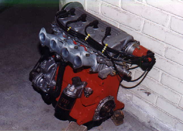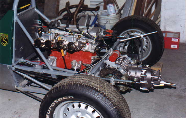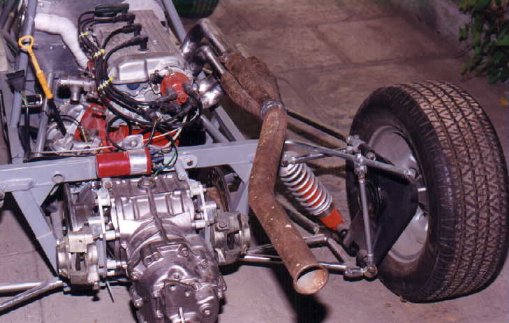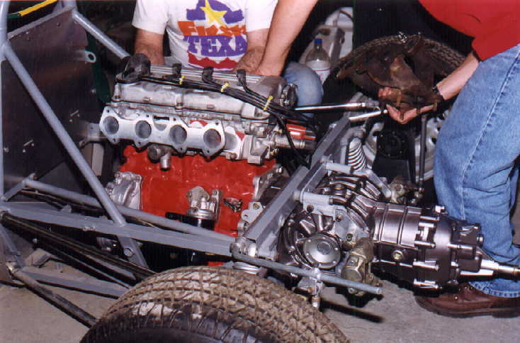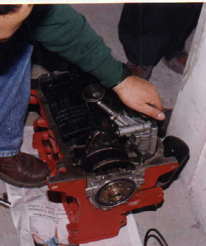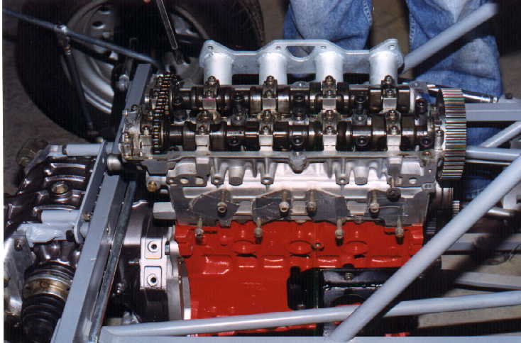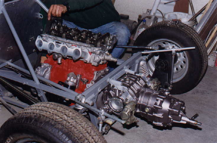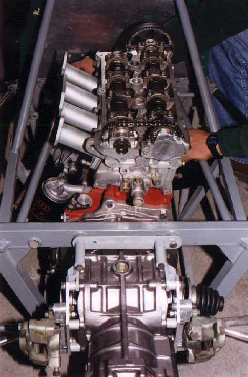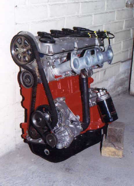 Finalmente, se decidió adaptarle un Motor de 2000 c.c. 16 Válvulas como los del VW Golf GTI, por lo que se consiguió un Monoblock de 1800 c.c. (Shortblock), de los que se venden en México de manufactura brasileña, el cual se abrió a 2000 c.c., al que se le adaptaron los pistones, cigüeñal y cabeza. Por lo bajito del coche, era casi seguro que habría que adaptarle CARTER SECO, lo cual es una verdadera complicación, no sólo por la adaptación de la BOMBA, si no por muchas otras razones, por lo que se decidió hacerle un pequeño corte al cárter que se usa para dicho motor, lo cual no afectó en lo más mínimo, ya que no hubo necesidad de modificar la BOMBA DE ACEITE original, por lo que el motor quedó sin la complicación del cárter seco (que en sí, el cárter seco es muy bueno pues en las curvas el motor nunca se queda sin aceite a causa de la fuerza centrífuga), pero con este motor no existe dicho problema, ya que eso se resolvió con un pequeño rompeolas (mismo que trae consigo la pichancha de la bomba de aceite).