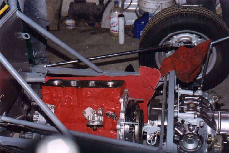 Ya rectificado el Monoblock, se pintó de color rojo, y se procedió a su cuidadoso armado (dejándolo estándar), es decir, no se preparó para carrera, pues ya de por sí estos motores son muy rápidos, por lo que un pequeño auto de tan sólo 400 Kilogramos de peso, prácticamente vuela con un motor de este tipo sin arreglar, además de que el motor preparado para carreras, también conlleva una serie de complicaciones y problemas.