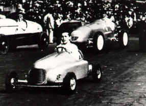 Nacho Solana en uno de los autos para niño (Desfile del 20 de Noviembre de 1940 paso por el ZOCALO de la Ciudad de México). |