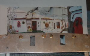 Posición de las escotillas a la habitabilidad de COMANDANCIA (Abajo de TOLDILLA), en el ALCAZAR con sus respectivos OJOS DE BUEY en LATON.