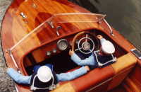 CENTURY LANCHA DE RECREO de 1949 "Runabout" Modelo hecho a mano " * * " Basado en el Modelo de Sterling, hecho a mano y modificado con caoba, que muestra un trabajo impecable en todo el casco, que se compone de duelas de caoba. (botes clásicos de los años 50 y que se podían apreciar en especial en U.S.A.) Esc. 1:10 ( 88 Cms. x 30 Cms.) Diseño y construcción (1992 - 1993) Benito De Teresa