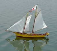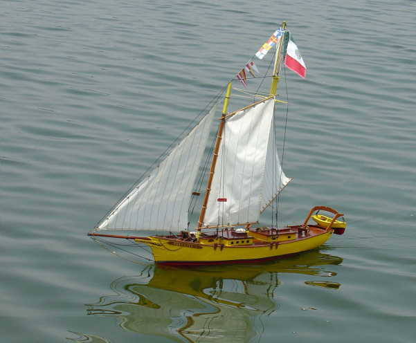 Goleta de 2 mástiles de 1935. Kit fabricado por la compañía alemana ROBBE, que por su diseño y dimensiones, permite una excelente navegación en lagos naturales.