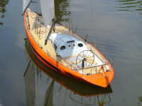 SAUDADE Esc. 1:12 (1.18 Mts. x 30 Cms., Altura de mástil 1.70 Mts.) El Velero original fue construido en Holanda por Judel/Vrolijk y fue ganador de la ADMIRAL'S CUP en 1973. representando a Alemania (La ADMIRAL'S CUP, es el segundo evento más importante a nivel mundial en carreras de veleros después de la AMERICA'S CUP). El original mide 112 pies (34.13 Metros) y se clasifica como tipo OFFSHORE SLOOP. Diseño y construcción Roberto Velasco (1999-2000)