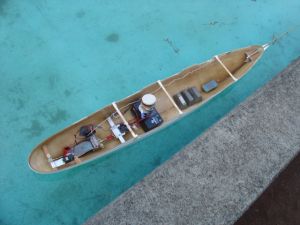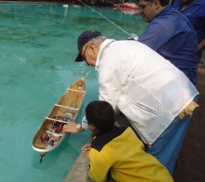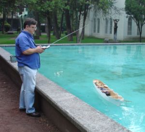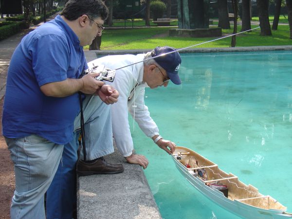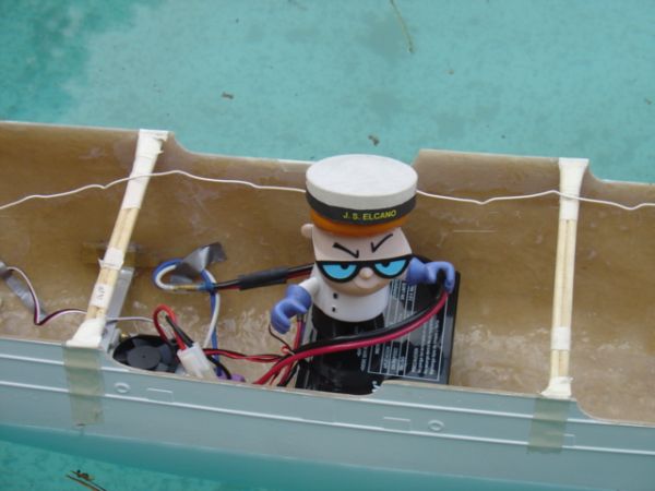 Bajamos las cosas, (CAJA DE PLOMOS "LASTRE"), batería, transmisor, etc., etc., y procedimos a lastrar el CASCO de ELCANO.... Ya que vimos que no había entrado agua al interior, procedimos a conectar baterías y arrancar el motor..... momento mismo en el que de la maleta de la CAMARA FOTOGRAFICA "SALTA" con gracia OLIMPICA el "AZOTE DE POLANCO",,,, DEXTER EL IMPLACABLE ubicándose de inmediato sobre la BATERIA de 12V. alegando que NI SE NOS OCURRIERA sacar del muelle a "SU" barco sin él a bordo.... y como traía el LEPANTO de ELCANO y se dice ALMIRANTE MIRON de la mar océano de POLANCO... tuvimos que acatar rigurosamente las ORDENES pues como AUTORIDAD MAXIMA del BUQUE ni quien se atreviera a contradecirlo en lo más mínimo.....