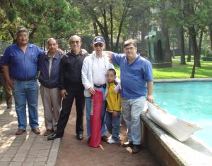 Ya como a eso de las 11:00 Am. llegaron gran parte de los colegas y amigos navegantes de Polanco. En la fotografía de izq. a der. Oscar Quiroz, Roberto Velasco, Carlos Sarmiento, el Sr. Benito de Teresa y su nieto (futuro navegante de Polanco) Joaquín Solana y el CASCO del B. E. JUAN SEBASTIAN ELCANO navegable sobre la guarnición del espejo.