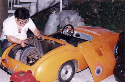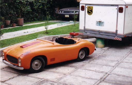 Este automóvil para niños, es el Nº 6 Serie I de 1959, y fue el último que se hizo de fibra de vidrio, como todos los de esa serie en el local propiedad de mi Padre Javier Solana en la Calle Parque Lira Nº 31, en la colonia San Miguel Chapultepec, México D.F., dicho auto, a últimas fechas estaba en la ciudad de Toluca, Edo. de México, y para variar el auto aunque caminaba, se le habían hecho unas modificaciones con piezas de coche grande lo que aumentan el peso y para dicha adaptación le hicieron perforacines y aplicaciónes de placas de acero al chasis sin ninguna necesidad. Solamente de piezas extras, entre soleras, placas, herrajes y cosas innecesárias NO ORIGINALES y que no funcionaban se le quitaron 45 kilogramos de peso, lo que representa una locura para este tamaño de auto, es como si a un auto Fórmula uno, que pesa 600 Kgs. le ponemos 200 Kgs. de peso extra.)