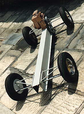 Este auto tiene clutch centrífugo, velocímetro, juego de luces, stop y direccionales, los asientos estan acolchados y son forrados en imitación piel , el piso de la cabina y extructura central del chasis, así como el mamparo trasero están alfombrados. Todo ha sido construido, practicamente en su totalidad (salvo algo de torno y soldadura de latón) en el pequeño tallercito que esta aquí en la casa. ( bajo el diseño y dirección Javier Solana creador y diseñador en 1957 del este modelo en particular y chasis).