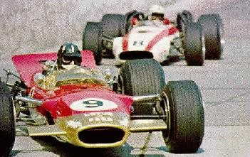 LOTUS, al igual que la mayoría de las escuderías corrían FORMULA 2, que eran autos muy parecidos con algunas modificaciones sobre todo en el motor y chasis, pero de todos modos eran autos tan rápidos como los F-1. (En la foto el LOTUS tipo 48 FORMULA DOS que corrió Moisés Solana en la Inauguración del Circuito Jarama en España 1967).