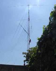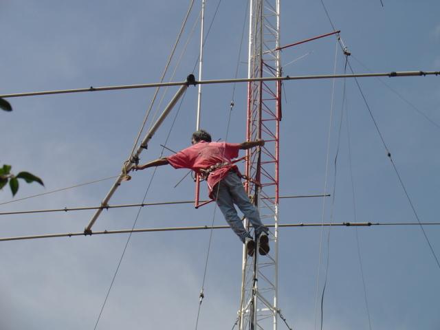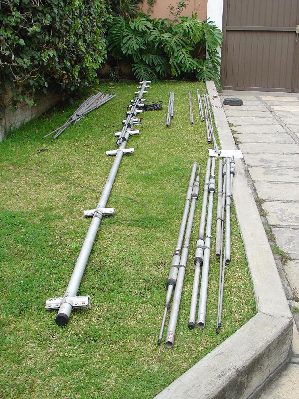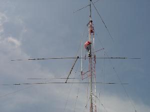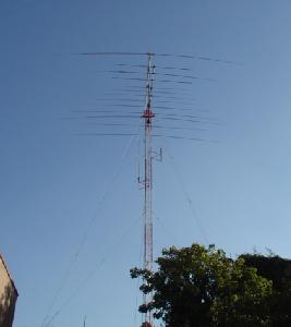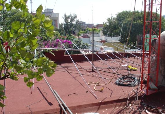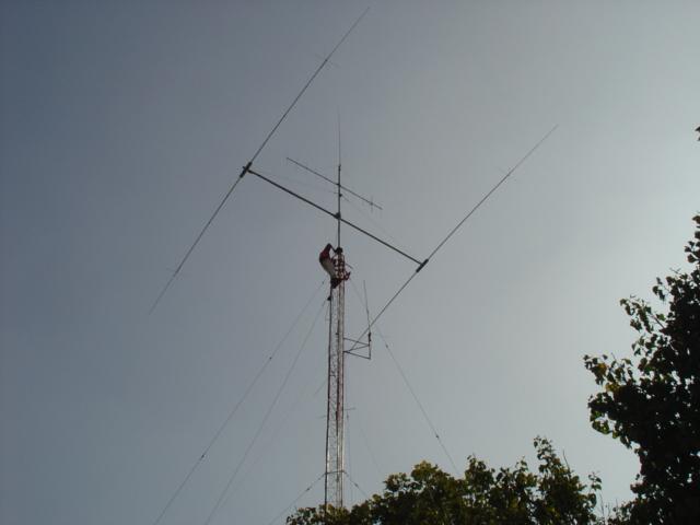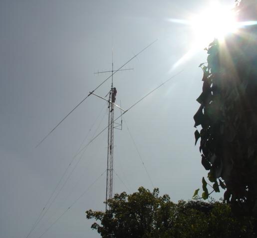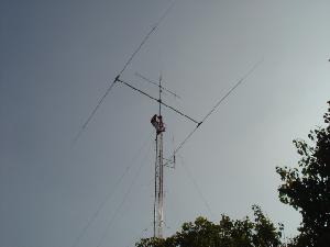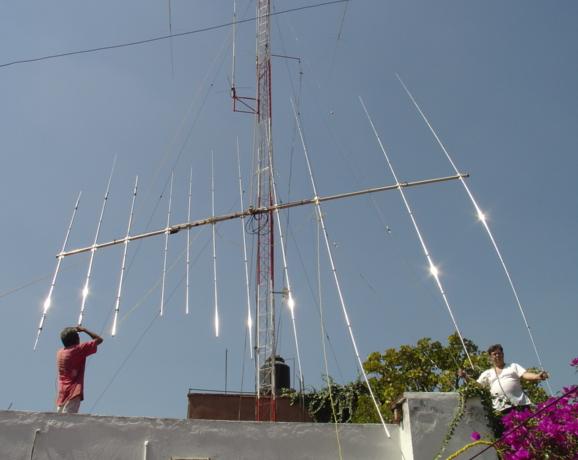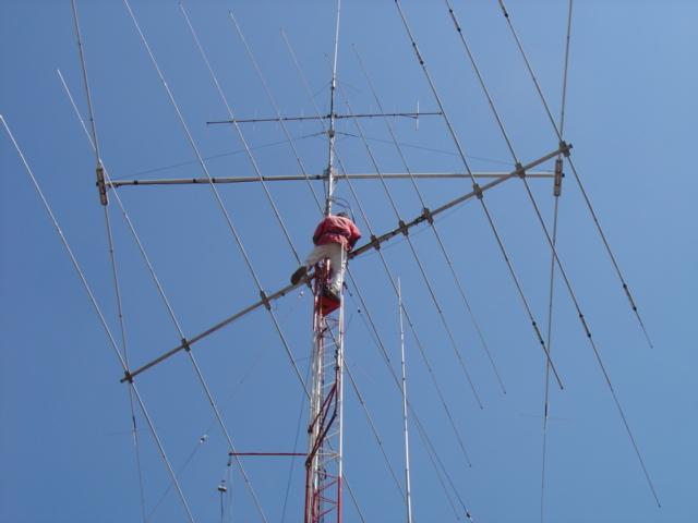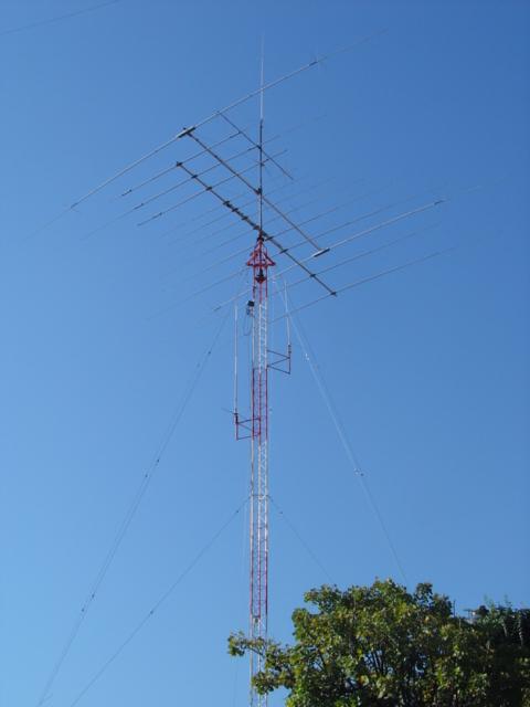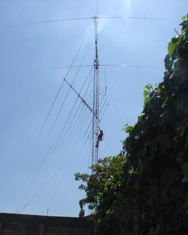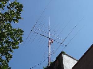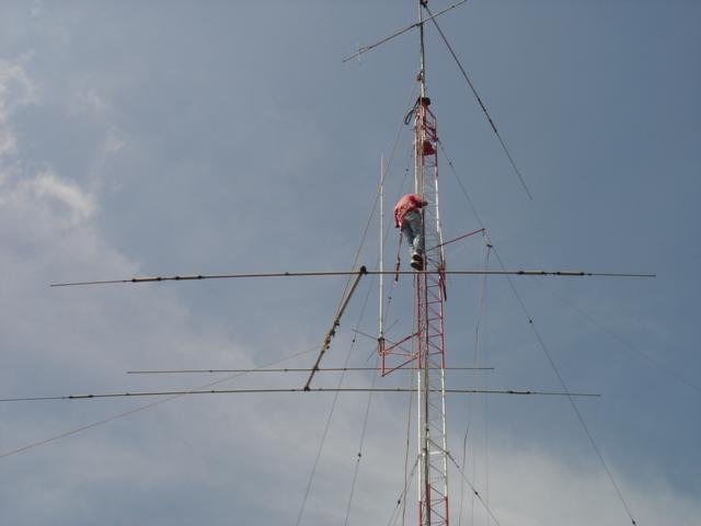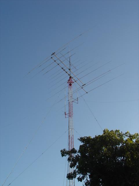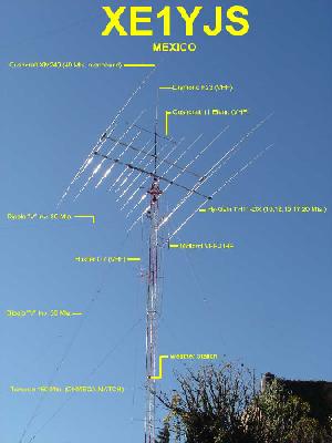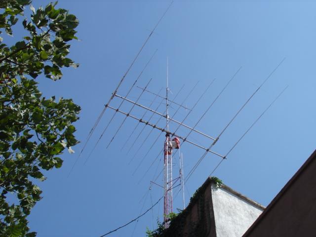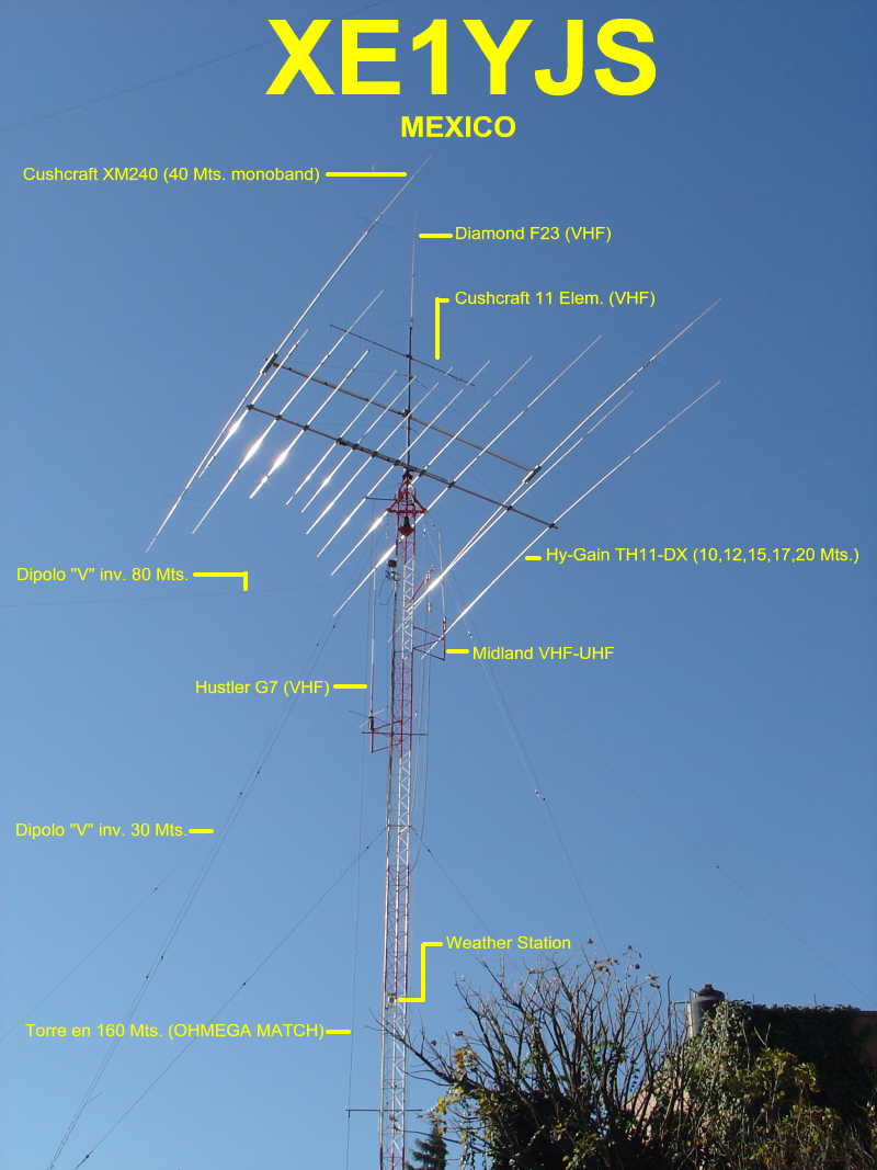 Hy-Gain TH11-DX (10,12,15,17 y 20 Mts.), Cushcraft XM-240 40 Mts. 2 elementos Monobanda, Dipolo para 30 Mts, Dipolo para 80 Mts y Omega Match para 160 Mts.